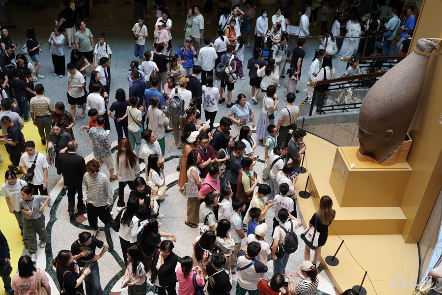 古埃及文明大展期间,上海博物馆人民广场馆人潮汹涌。赖鑫琳摄